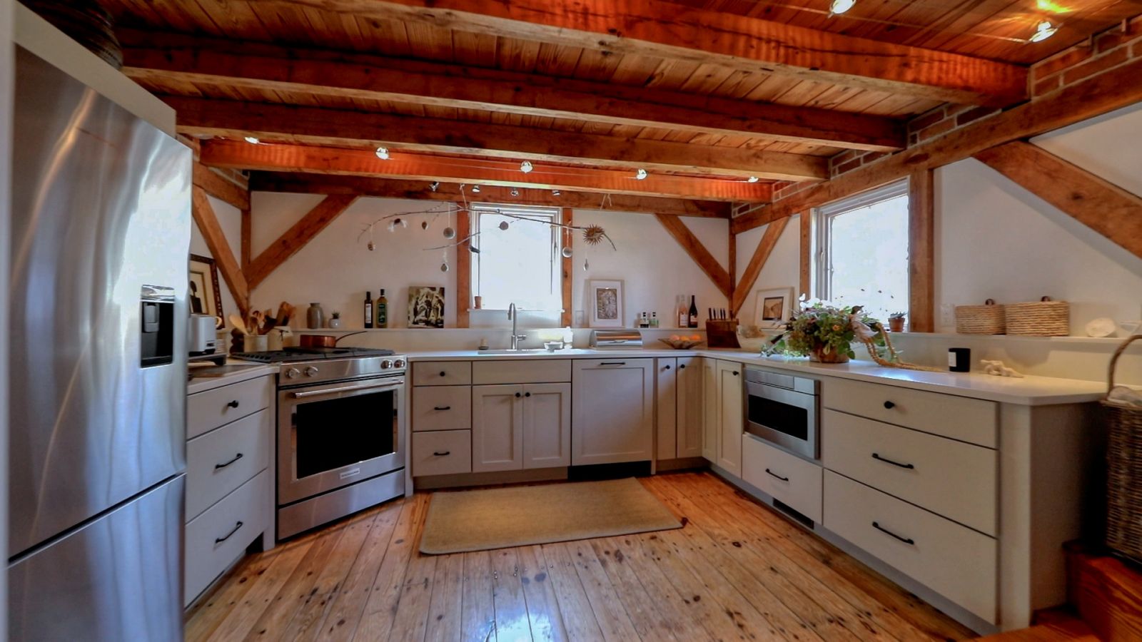 Cottage kitchens are unpretentious, guest friendly and cozy. Their design flair comes in the form of floral patterns, period hardware, and beadboard, to name a few possibilities. The traditional cottage kitchen features wood planks underfoot, often reclaimed wood flooring.  The Farmhouse sink is another popular feature for Cottage kitchens. Sometimes referred to as apron-front sinks, farmhouse sinks are deep enough to contain big pots and pans ad are typically, white ceramic. Butcher-Block Counters combine functionality with warmth, a hallmark of the cottage style. Fixtures also go a long way in creating a period feel. As Victorian styling was the rule when many cottages were built, Victorian faucets fit right into cottage kitchens. Designers often recommend concealing appliances behind sliding wood panels so shiny stainless steel doesn’t ruin the cottage feel.